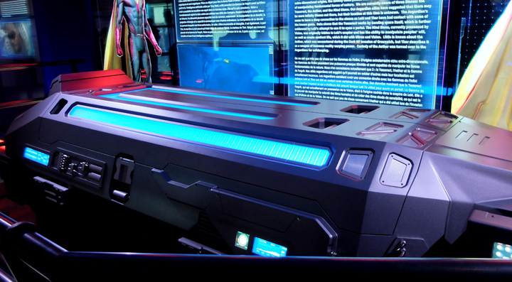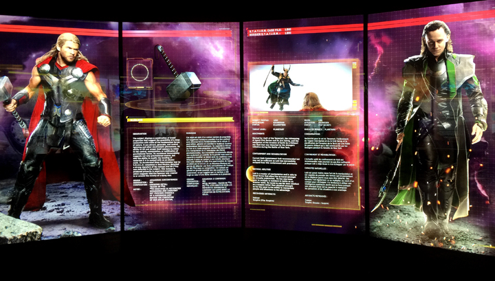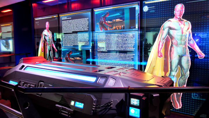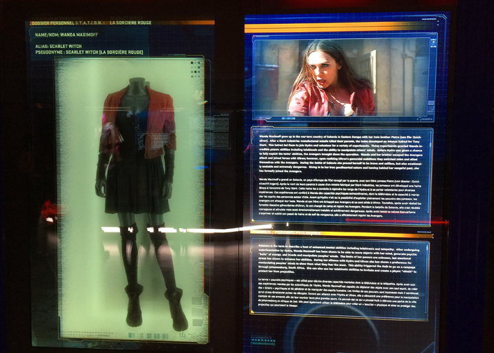 Utilisant les éléments déjà présentés à New York et Séoul, l’exposition parisienne est mise à jour. Ainsi, vous y découvriez les secrets d’Ant-Man, du Faucon, de la Vision et de la Sorcière Rouge. N’étant pas à l’affiche du prochain Civil War, Quicksilver est absent, dommage. Et méfiez-vous d’Ultron !