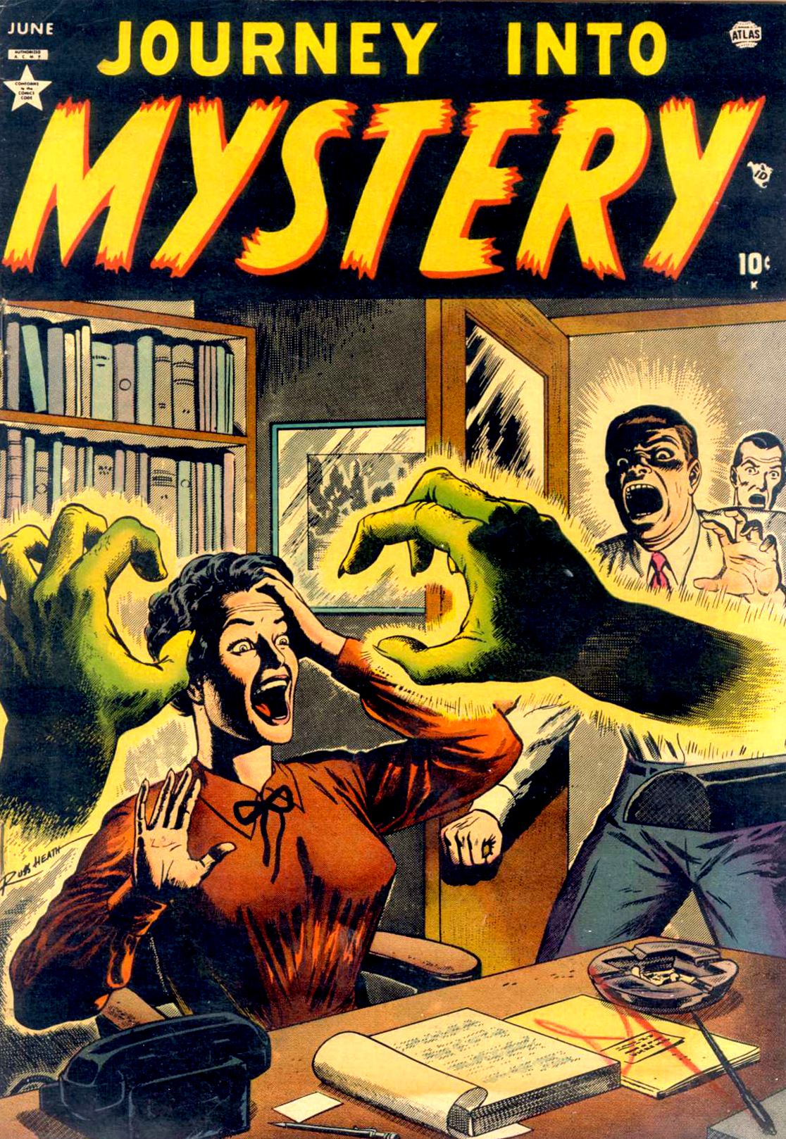 Mais le vrai tournant de sa carrière arrive quand il arrive – sans renoncer à ses autres clients – chez EC Comics et au sein de l’équipe de MAD. Harvey Kurtzman est en effet également un ancien de Timely. Il y a rencontré Heath à la fin des années 40. Kurtzman commande des pages à Heath pour Frontline Combat, titre de guerre d’EC Comics devenu légendaire. Mais il lui ouvre aussi les portes de Mad. Ce magazine humoristique publie dans l’été 1954 son Plastic Sam, parodie du héros Plastic Man. Heath a désormais ses entrées un peu partout dans le milieu des comics et voilà qu’il prouve qu’au-delà du seul réalisme il peut aussi faire dans l’humour quand besoin est. Outre Kubert ou Kurtzman, Heath multiplie les amitiés dans le milieu des comics. Il devient proche, en particulier, d’un jeune Ross Andru. Cette capacité à tisser des liens, à se montrer d’un contact facile, fait que Heath va passer la plus grande partie de sa carrière sans contrat d’exclusivité. Il expliquera plus tard qu’il lui suffisait d’aller manger et discuter avec des amis. Et que par la force des choses, dans la discussion, ces amis qui étaient des collègues lui confiaient du travail avant la fin du repas.