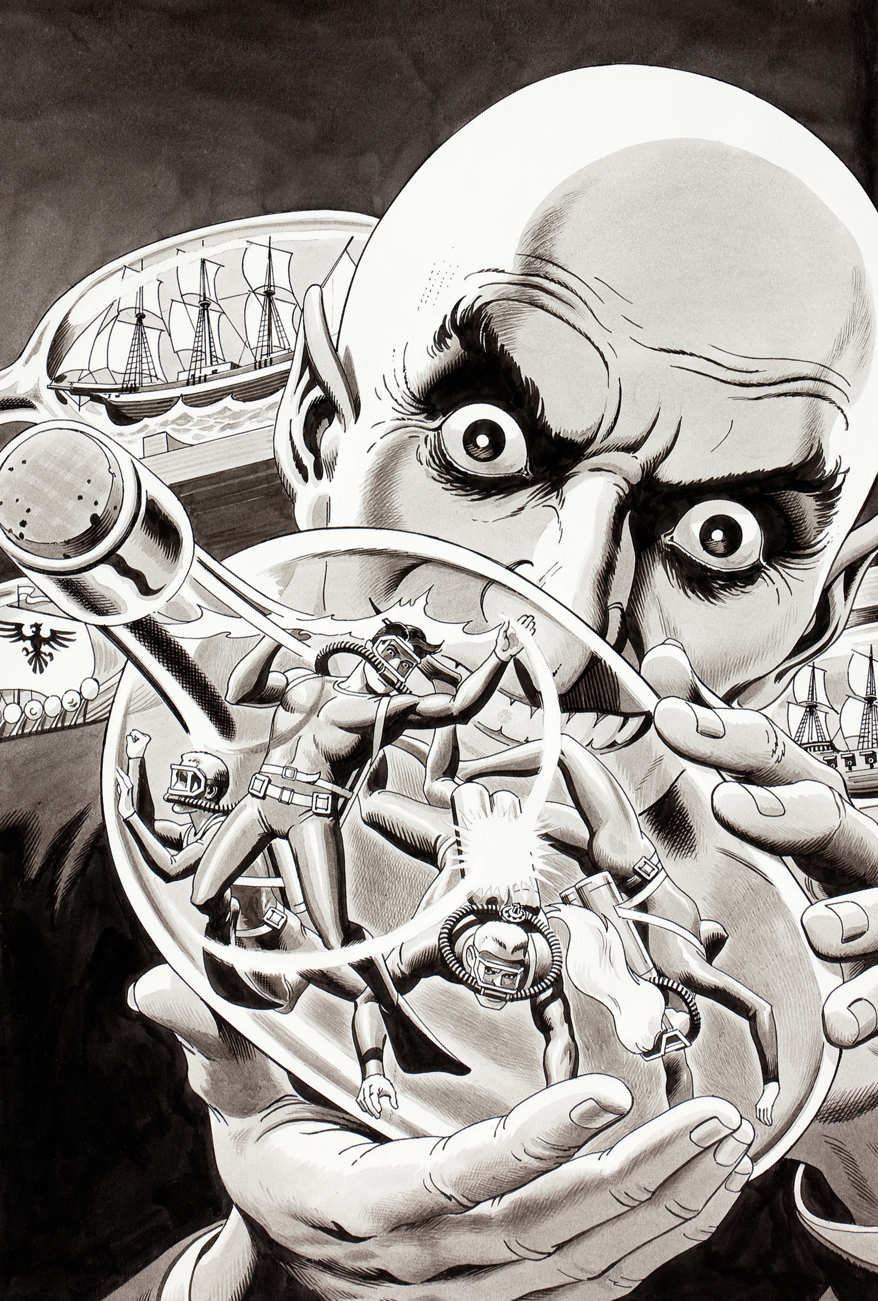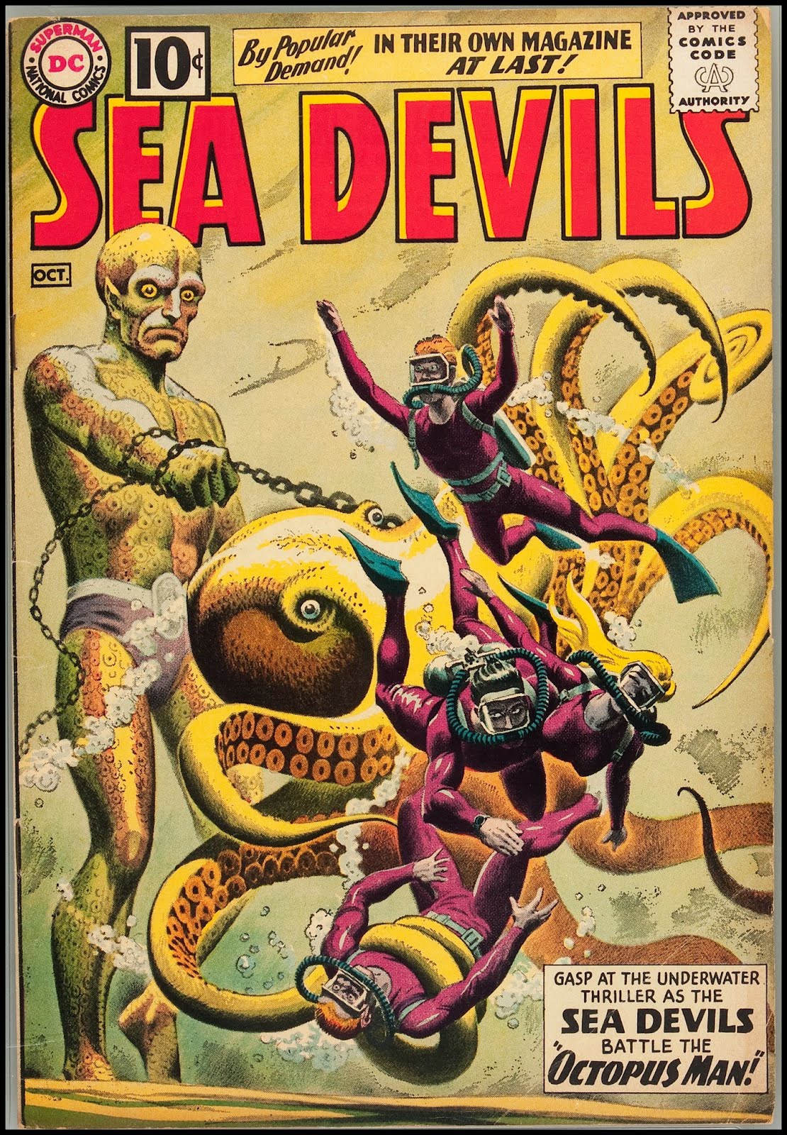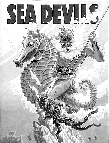 Russ Heath sort de façon notable des récits de guerre en 1960 quand, en collaboration avec le scénariste Robert Kanigher, il cocréé les Sea Devils dans Showcase #27 (toujours chez DC). A l’époque les groupes d’aventuriers ont le vent en poupe (les Challengers de l’Inconnu, le Suicide Squad…). Heath est un passionné de plongée sous-marine. Kanigher et Heath ont donc l’idée d’une variation spécialisée, des plongeurs « diables des mers » dont l’essentiel des exploits (extraordinaires) se déroule dans les fonds marins, où il faut affronter selon les cas le dieu Neptune ou des créatures géantes. Kanigher s’engage à l’époque dans une logique où il veut que les titres d’aventures ou de guerre aillent concurrencer les super-héros (qui sont en train de renaître) ou la science-fiction sur le registre des menaces invraisemblables. Du coup, Heath et lui vont créer le Haunted Tank (le Tank Hanté).L’idée est de raconter les mésaventures d’un équipage de char blindé, en pleine guerre mondiale, dont le lieutenant est hanté par le fantôme de son ancêtre, un général sudiste. Si ce Tank Hanté occupe une place de choix dans le CV du dessinateur, ce dernier expliquera ne pas raffoler de sa création, appréciant peu d’être obligé de représenter dans un milieu fermé (l’intérieur du blindé) toujours les mêmes personnages. Sans en être le co-créateur, Heath va aussi dessiner des épisodes de The War That Time Forgot (basés sur Dinosaur Island, où des G.I. vont régulièrement se perdre pour lutter contre des dinosaures). Quand bien même ces idées de départ peuvent paraître loufoques, Heath va les représenter avec le plus grand sérieux.