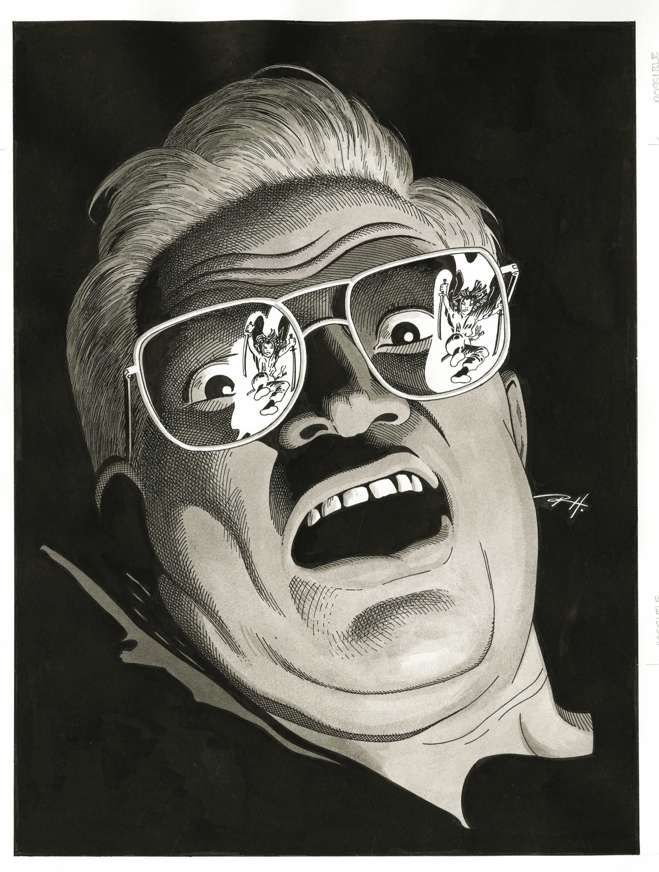 Vu comme un spécialiste de l’ambiance de la Seconde Guerre Mondiale, c’est à lui que Disney fait appel pour dessiner… le Rocketeer. Ou plus exactement l’album de BD inspiré du film Disney lui-même inspiré du comic-book de Dave Stevens. Le dessinateur ne revient qu’en 1993 chez DC Comics où il dessine tout un arc de Legends of The Dark Knight, ce qui reste sans doute son projet le plus super-héroïque (quand bien même Batman appartient au même monde urbain que Moon Knight). Respecté par ses pairs et par les artistes qui sont arrivés après lui dans les comics, Russ Heath se voit invité par Frank Miller à dessiner une page de Sin City. Heath fait son autoportrait face à une mort certaine, alors qu’une des filles de Sin City s’apprête à le tuer.