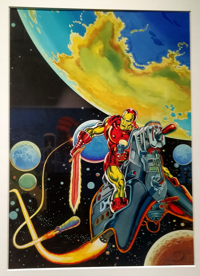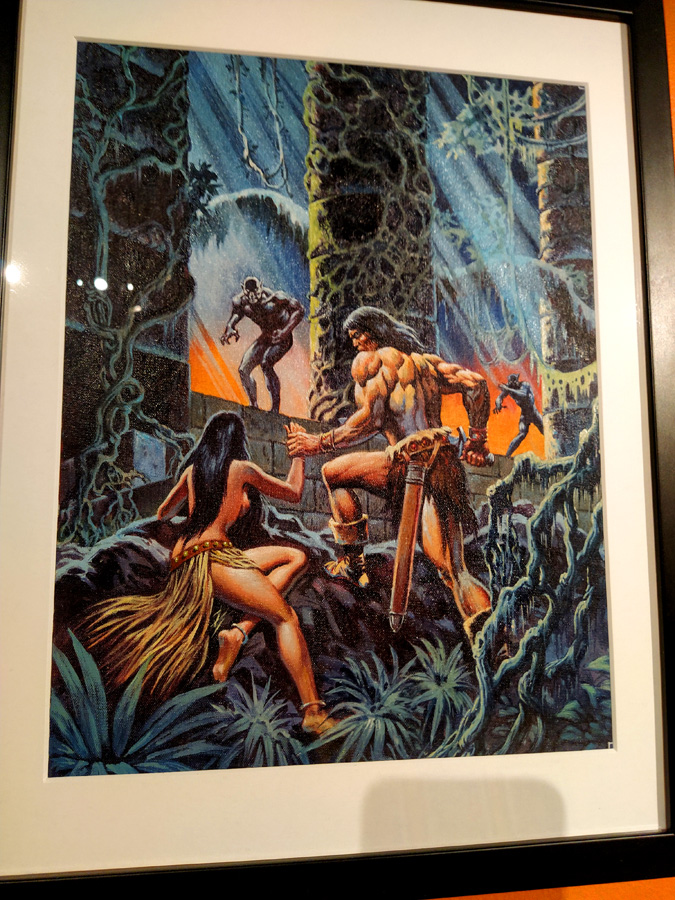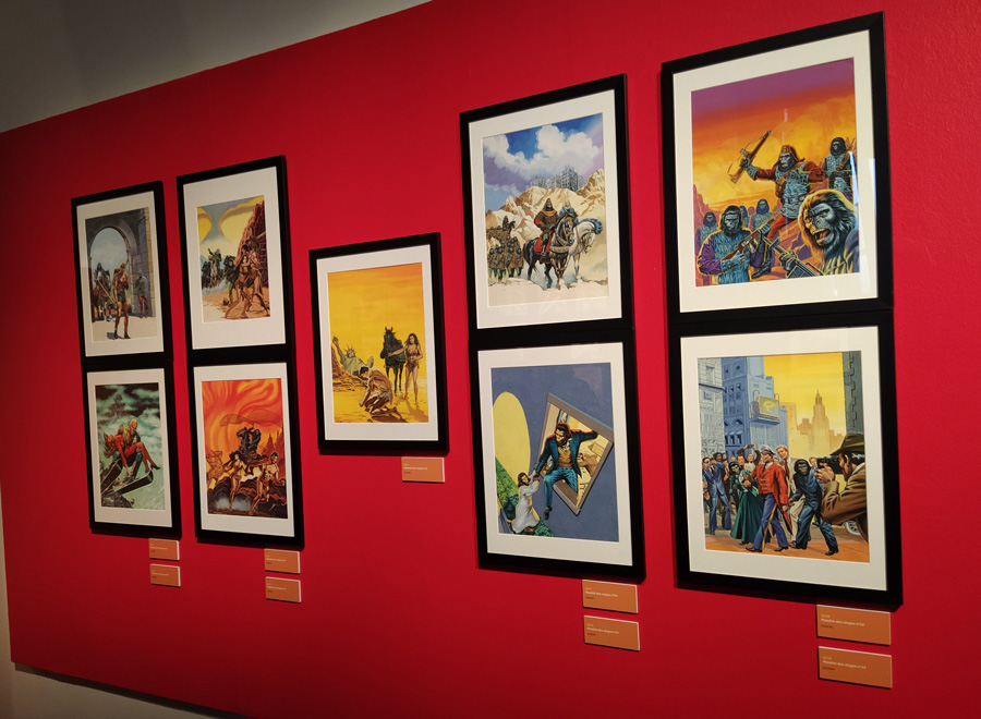 L’exposition, concrétisée en 2020, est magnifique. Reprenant les débuts de l’artiste et l’époque où Frisano réalisait des pages de BD, elle prend en compte ses premières couvertures (pas peintes mais tracées) pour des revues comme le Fantôme ou Mandrake. Et puis allégrement on glisse vers ses Tarzan puis vers les affiches de cinéma qu’il a réalisé dans un style ultraréaliste, pour des films mettant en vedette Burt Lancaster ou Clark Gable. Mais il faut dire ce qui est, la plus grande partie de l’expo reposait sur l’époque où Frisano a peint « du Marvel » et tout ce que l’éditeur américain représentait à l’époque, par extension en dehors de l’univers Marvel stricto-sensu. C’est à dire aussi Star Wars, Conan où Doc Savage.