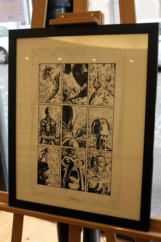 Le dessinateur brésilien Mike Deodato a percé sur la scène des comics américains dans les années 90, avec des séries comme Wonder Woman, Thor ou Incredible Hulk. Mais depuis le début du XXI° siècle l’artiste est devenu plus particulièrement un pilier de Marvel en se voyant proposer de nombreuses séries en vue ou même certains crossovers. L’exposition-rétrospective accueillie par la Galerie 9e Art (4 rue Crétet, 75009 Paris) fait le tour de ces nombreuses activités. Si des projets récents comme Thanos sont absents à l’appel, on croise aussi bien des pages et des couvertures de Punisher War Journal ou des X-Men que des Guardians of the Galaxy. Il y a des choses impressionnantes, comme une couverture en tons grisés d’Avengers Millenium, où Captain America, Quicksilver et Hawkeye font face à un dinosaure, certaines pages devenues classiques des New Avengers, Secret Avengers, Spider-Man Breakdown ou des Thunderbolts ou des choses plus rares, comme des crayonnés préparatoires et des études de personnages (Rocket Raccoon, Groot, Mystique, Spider-Man…). Outre les planches exposées, quelques curiosités sont aussi visibles dans des books. On y croise aussi bien Batman que Conan.
