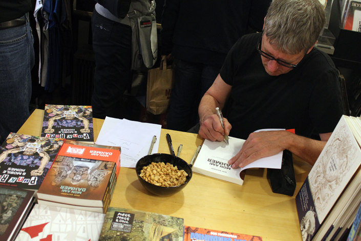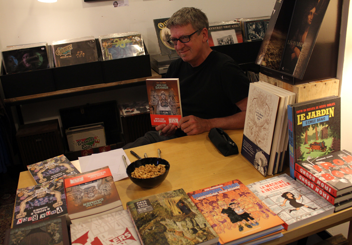 Comics Records accueillait, avec le concours des éditions « çà et là » Derf Backderf (le scénariste et dessinateur de Mon ami Dahmer – Prix de la révélation de l’année à Angoulême – ou encore de Punk Rock et Mobile Homes). C’est un artiste à l’univers atypique mais très abordable et disponible, qui prenait le temps de discuter avec ses fans.