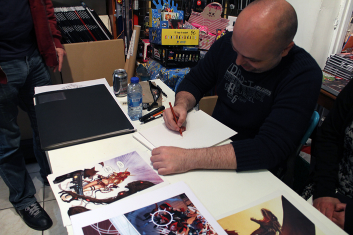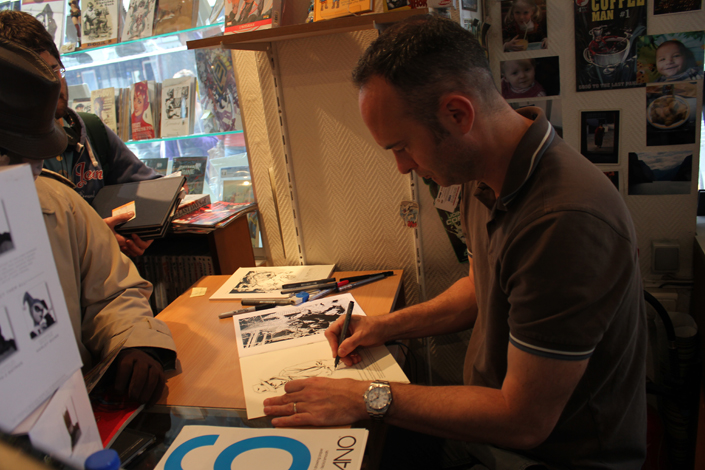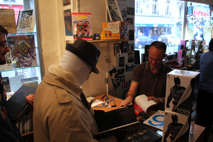 [FRENCH] Dans de nombreux comic-shops à travers le monde ce samedi était le Free Comic Book Day. En France aussi on a pratiqué cette fête des comic-books gratuits et plus encore que les autres années, la longueur des files d’attente et l’épuisement de plusieurs BD promotionnelles étaient là pour le prouver dans la plupart des endroits concernés. À Paris trois auteurs de comics avaient fait le déplacement cette fois-ci, répartis dans diverses boutiques de la capitale.
