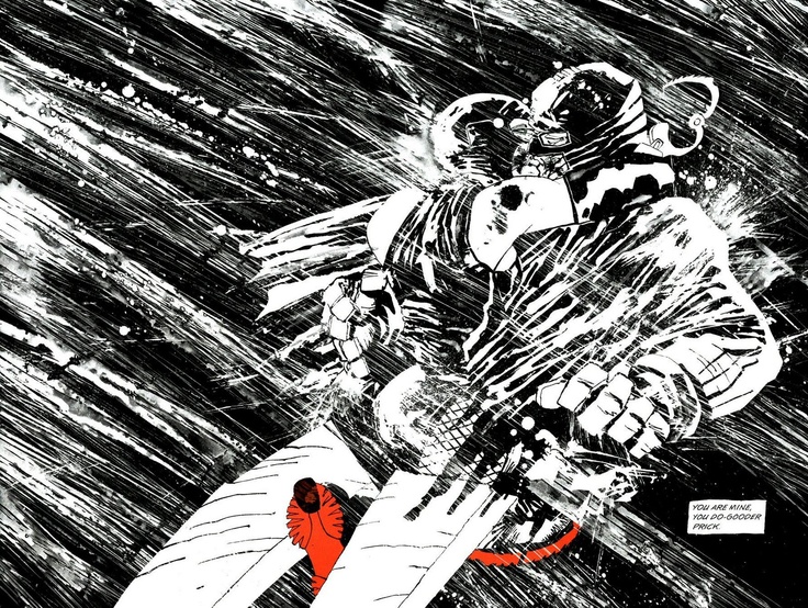 Soyons clairs, on l’a dit : Jack Kirby n’a pas créé la représentation visuelle de cette énergie à l’œuvre dans les combats de super-héros. Mais il l’a portée à un tel degré de visibilité qu’elle en est devenue capitale. De même, Frank Miller ne fut pas le premier à appliquer les techniques popularisées par Jackson Pollock. Bill Sienkiewicz, notamment, avec qui il a plusieurs fois collaboré, en usait dans ses peintures ou ses encrages. Mais là encore, Miller les a exploitées à un tel niveau de priorité qu’elles sont à présent fondamentales dans son travail. Ceci étant, l’étude des travaux de Kirby et Miller nous aura montré une chose : l’énergie consubstantielle du récit super-héroïque a traversé la feuille de dessin ! Elle est passée, en quelques décennies, du poing fermé du personnage aux doigts serrés du dessinateur. Ce déplacement, cette passation de (super) pouvoir, nous dit peut-être (sûrement ?) quelque chose de l’art, ou même de notre société. Mais cette question-là, bien sûr, est une autre histoire.