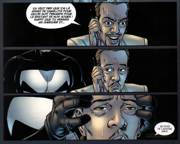 Le choix persistant du Punisher est bien entendu discutable sinon contestable, et pas plus Becky Cloonan que Garth Ennis, avec Steve Dillon, ne feront du reste l’économie de ce débat moral au travers des intrigues. Mais là n’est pas la question dans cette étude. Nous retiendrons seulement que choix il y a, justement, c’est-à-dire que l’expression monolithique du personnage procède d’une « décision ». La tristesse, puis la colère, chez Frank Castle, vont provoquer la résolution du Punisher, là où tous les autres personnages, malfrats, détraqués ou victimes, affichent au contraire des réactions incontrôlées, dictées par des événements qu’ils endurent sans jamais pouvoir reprendre les rennes de leur destin. Les émotions de Frank accouchent non pas d’un sentiment subi mais bien d’un sentiment choisi. On pourrait nous répondre que c’est le traumatisme qui détermine le Punisher. Mais voici ce que dit Henri Bergson dans « Essais sur les données immédiates de la conscience » : « Nous sommes libres quand nos actes émanent de notre personnalité entière, quand ils l’expriment, quand ils ont avec elle cette indéfinissable ressemblance qu’on trouve parfois entre l’œuvre et l’artiste. » De toute évidence, sous les traits que lui prête Dillon, c’est la personnalité intégrale et achevée du personnage qui décide. On y voit très clairement que le trauma a fusionné avec tout son être ; que le trauma EST le Punisher. L’art de Steve Dillon penserait alors ce précieux (parce que rare) libre-arbitre émergeant au sein de tous les déterminismes que nous subissons. Il peindrait même la victoire de ce libre-arbitre acharné qui, sur le visage du héros, perdurera tout au long des divers récits, allant jusqu’à transcender les scénaristes – de Ennis à Cloonan en passant par Dillon lui-même -, une résolution qu’il affichera continûment face à ses adversaires ou alliés. Bien sûr, le pinceau de Steve nous montre un Punisher résolu et imperturbable qui flingue tous les mafieux qui croisent sa route ; mais ne montrerait-il pas en même temps, d’une encre plus philosophique (et plus sympathique !), le libre-arbitre qui dézingue tous les déterminismes sur son chemin ?