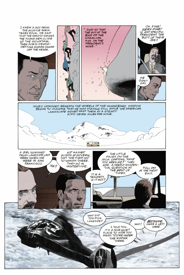 8 septembre 2018Neil Gaiman! P. Craig Russell! Shadow and Wednesday find themselves on the run from both the police and the mysterious Mr. Town. Along the way, they find help in their evasion from Whiskey Jack and John Chapman, all while Shadow continues to try to sort through the chaos in his life.