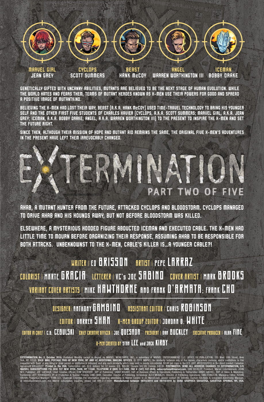 24 août 2018Cyclops. Iceman. Angel. Beast. Marvel Girl. The original team of teen mutants brought together by Professor Charles Xavier many years ago have been shunted through time to find a world they barely recognize but were determined to help. Now, finding themselves targeted for death, the future of mutantkind lies squarely in the hands of its past. Brisson and Larraz answer the biggest question of all: can the fate of the X-Men be changed?