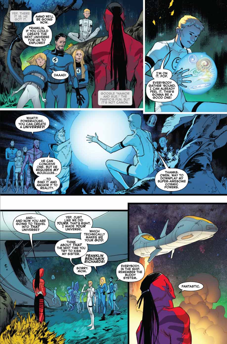 7 septembre 2018What have Reed, Sue and the kids been up to all this time? What adventures have they been on? What strange new friends have they found along the way? What deadly new enemies have they made? And what are Franklin and Valeria’s new codenames? All these questions will be answered… just in time for entire universes to die!
