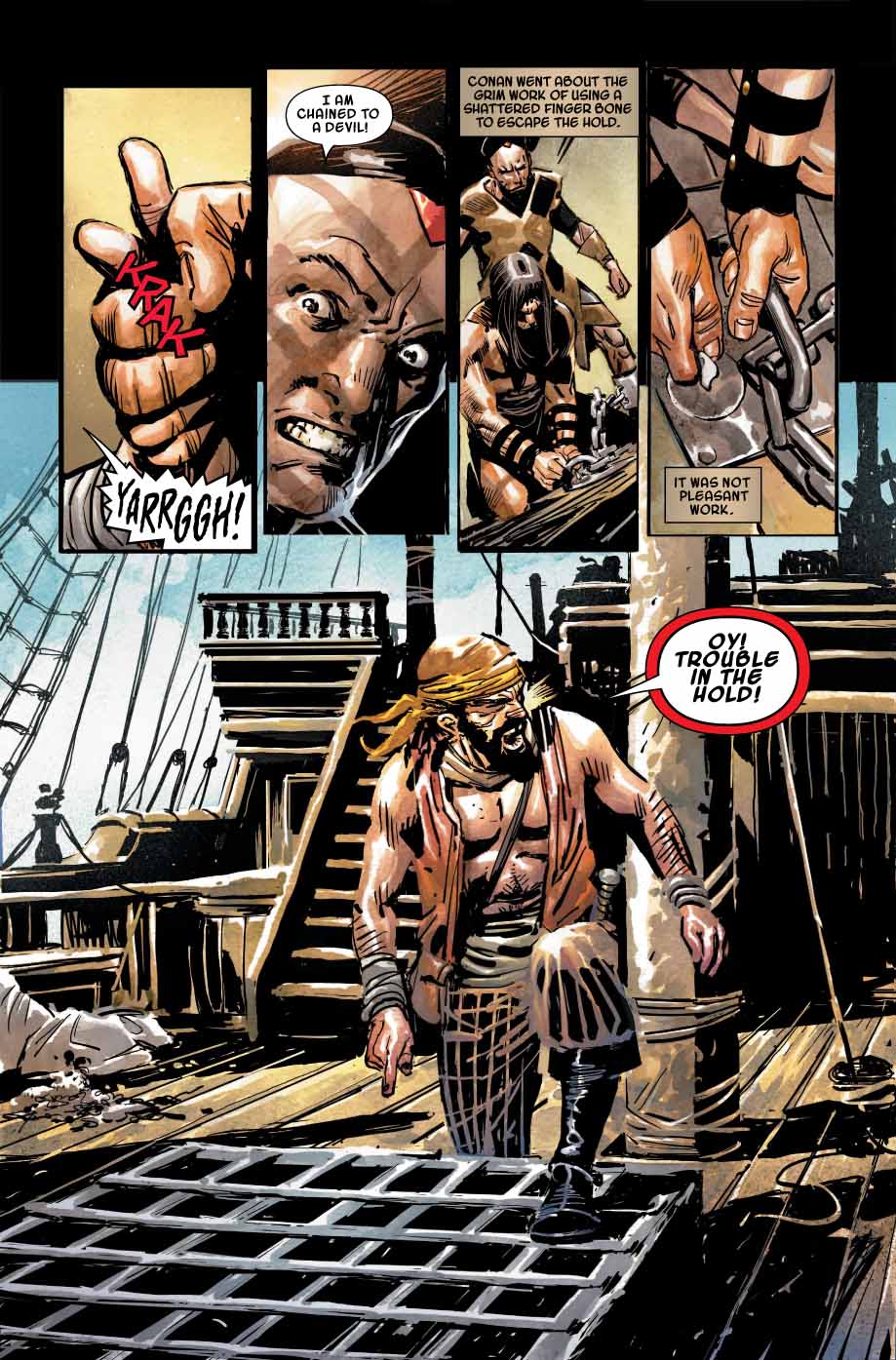 10 février 2019The ancient cult of Koga Thun. A mystical treasure. And the only man who can save the Hyborian Age! Adrift at sea. No food. No weapons. Death surely awaits him. But the lionhearted Conan is not so easily subdued, by Crom! When Conan finds himself captured, he unleashes his might on an unsuspecting pirate crew…one whose dark secrets will plunge Conan on the trail of an ancient treasure that may prove to be his undoing!