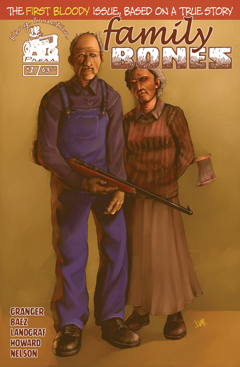The first two titles available online are King Tractor Press’ highest in overall sales. « Family Bones » is the true crime comic book that’s been a hit with critics and readers alike. It’s the story of Ray and Faye Copeland as told through the eyes of their unwitting nephew. The city boy must learn to adapt to the rigors of farm life and survive the murderous plot going on around him. It’s written by Shawn Granger, an actual great nephew of the Copelands. The first five issues are available now; the sixth issue should be available in February.