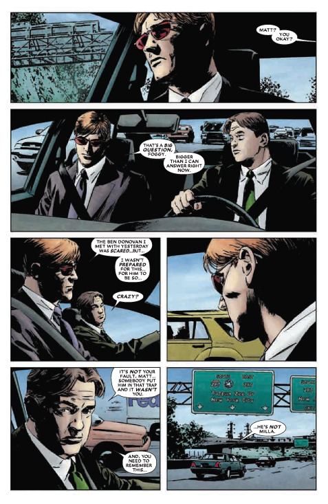 [ENGLISH] Marvel tells us: THE STORY: Part 3 of « Cruel and Unusual » with special guest co-writer Greg Rucka joining the acclaimed DD creative team! Daredevil and Dakota North have investigated all angles of the brutal murders that Big Ben Donovan sits on Death Row for, and all they’ve come up with is more questions and conspiracies. Why does Big Ben want to be executed for a crime he probably didn’t commit? And why does the government want Dakota and Matt Murdock off the case? Find out these answers and more!