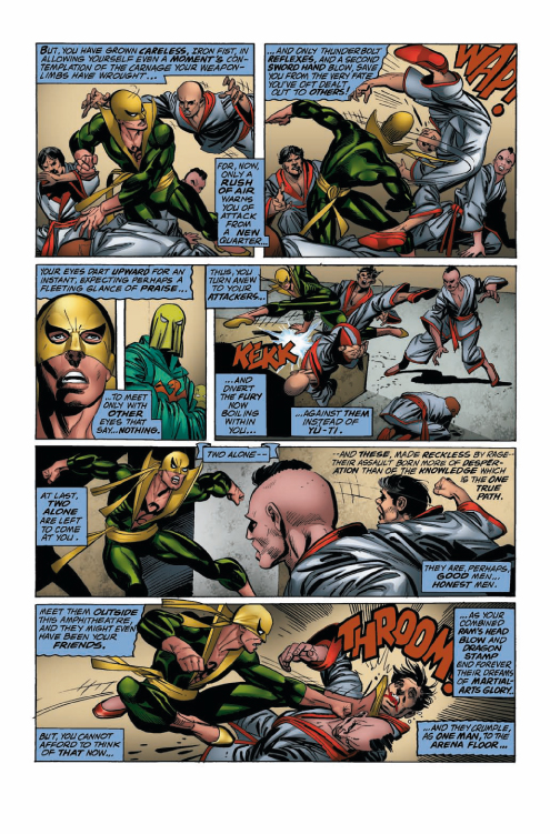 [ENGLISH] Marvel tell us : THE STORY: Honor. Dedication. And above all, purity of heart. There have been sixty-six men and women to carry the mantle of THE IMMORTAL IRON FIST throughout the ages – men and women of great courage, valor, skill and sacrifice. Sixty-six men and women have stood between man and the unstoppable forces of evil, willing to give all they have to hold back the hordes. This is the story of Danny Rand, the Iron Fist of today – as told in THE BOOK OF THE IRON FIST! Raised in the otherworldly kingdom of K’un-Lun as an unparalleled martial artist, the Earth-born Rand mastered the ability to focus his spiritual energy into an impervious fist of iron. Now, as the costumed adventurer called Iron Fist, he fights with the fury of his ancestors and a hope for a better tomorrow! Experience the birth of a legend like never before is this special re-presentation of MARVEL PREMIERE #15-16 – featuring lush, fully rendered coloring and all-new framing sequence by MATT FRACTION and KANO!