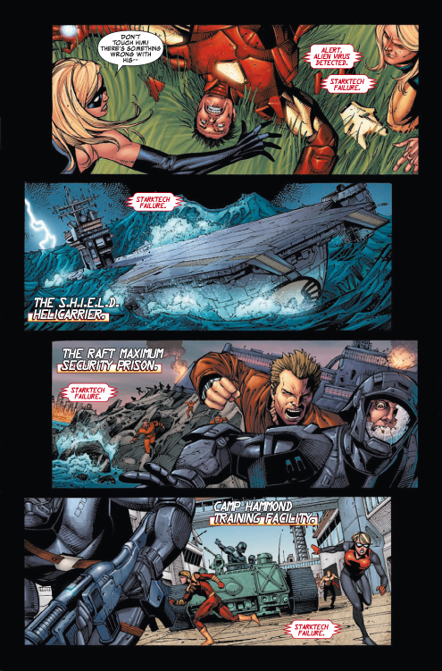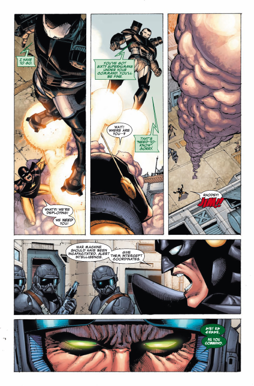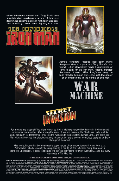 The Skrulls have stricken Iron Man with an alien virus that renders his armor and technology useless! But Tony Stark plans for every possibility…so it’s time to say hello to Tony’s not-so-little friend—War Machine, weapon of s.h.i.e.l.d.!