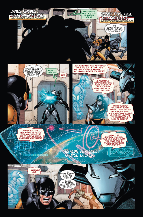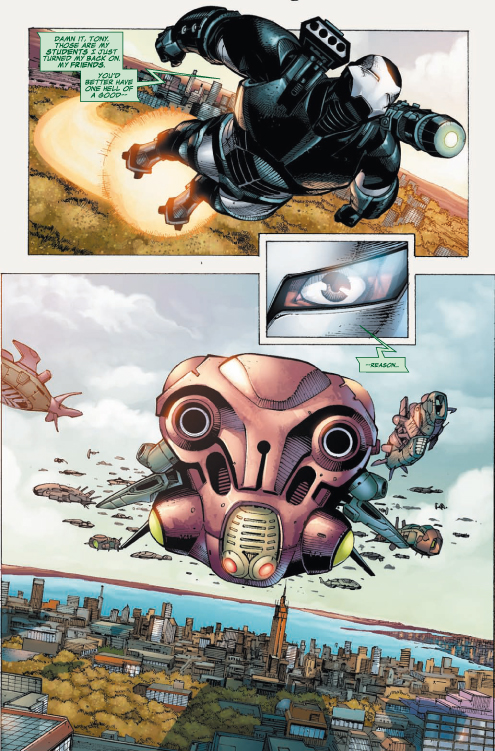 But can one man, even one as well-armed as James Rhodes, stand alone against a worldwide invasion? A major new chapter in both Tony and Rhodey’s history begins here!