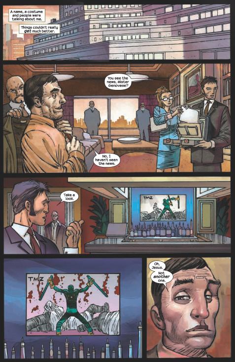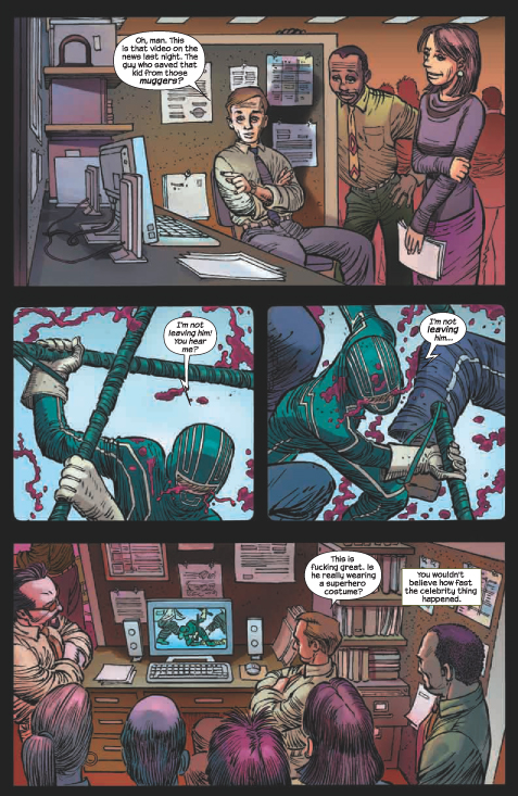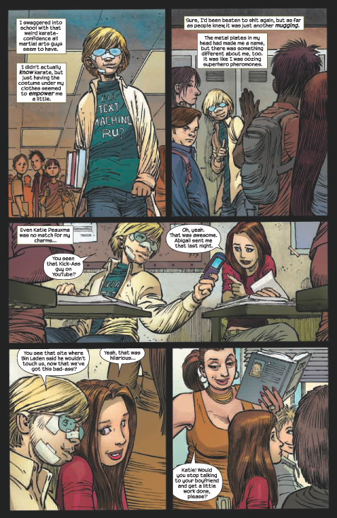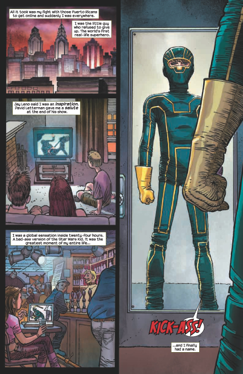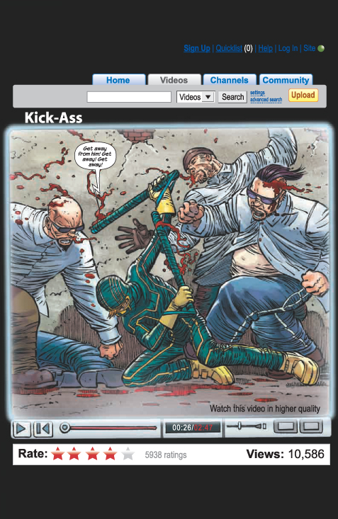 [ENGLISH] Marvel tells us: You were wowed by the first two issues of this comic. But wait until you read issue three. Mark Millar (Civil War) and John Romita Jr (World War Hulk) only up the odds here and the pace is breathtaking. I read it weeks ago and I’m still having nightmares. Never have I seen such sickening violence sold to readers in the name of entertainment. If it wasn’t selling so well we’d have to stop publishing this monster. Follow Dave’s journey from zero to hero as he becomes a youtube celebrity. He sure kicked the ass of those drop-outs, didn’t he? Join us this issue where he inspires others to dress up and hurt people.