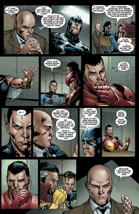 Marvel’s most covert gathering of heroes has a secret so dark that they never speak of it, even to each other. And it could be what has brought about the Secret Invasion. From Secret Invasion author Brian Michael Bendis and Uncanny X-Men’s Billy Tan.