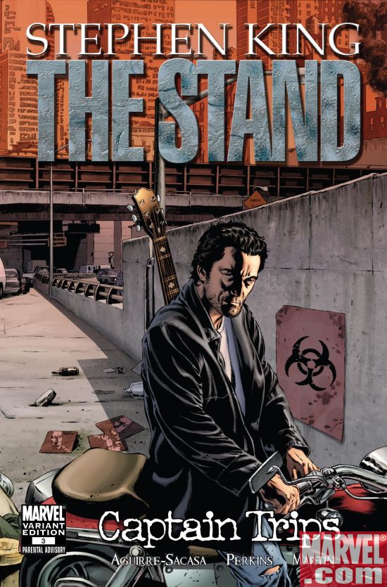 [ENGLISH] Marvel tells us: As reported earlier today on Salon.Com, Stephen King’s seminal novel, THE STAND, is now celebrating its 30th Anniversary! As fans of the World Fantasy award-winning author’s most popular work celebrate this landmark date, don’t forget to check out The Stand: Captain Trips, Marvel’s critically-acclaimed graphic fiction adaptation of this novel! With a quick sell out of the first two issues at Diamond (though copies may be available at the retail level, the horror epic continues in The Stand: Captain Trips #3 (of 5)!