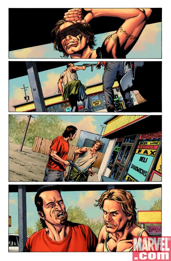 [ENGLISH] Marvel tells us: Following its two red hot debut issues, The Stand: Captain Trips #3 (of 5) hit shelves today! Acclaimed writer Roberto Aguirre-Sacasa (Secret Invasion: Fantastic Four, Angel: Revelations) along with Eisner-nominated artist, Mike Perkins (Captain America, House of M: Avengers) continue to bring new life to what is commonly deemed King’s most popular novel. As the superflu known as “Captain Trips” continues to spread across America, the lives of poor souls such as Larry Underwood and Frannie Goldsmith can’t help but be affected by it. And as the media begins to catch wind of rumors about chemical warfare and bubonic plague, the actions of the American government begin to devolve, local and global legal systems start to deteriorate, and two wild and crazy outlaws–Lloyd Henreid and Poke Freeman–decide to take advantage of the situation, wreaking a path of destruction through the American southwest! It’s murder and mayhem, Stephen King-style, in the next chapter of the epic struggle between good and evil! Plus, a stunningly visceral regular cover and sketch variant cover from acclaimed artist Lee Bermejo and the third of five connecting variant covers from Perkins – this is a must for any King fan!