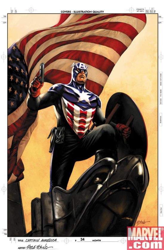 [ENGLISH] We knew for a week that Marvel was about to announce Captain America’s return for January 2008. But the House of Ideas remained vague about the event, not even giving us a teaser to satisfy our curiosity. It was made official today (on marvel.com). The star-spangled hero will be back in Captain America#34.