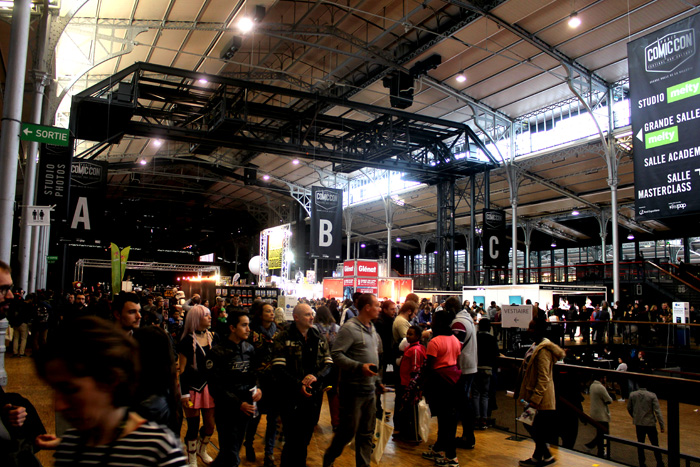 De fait, si la concurrence entre la Comic Con Paris et la Paris Comics Expo a polarisé beaucoup de discussion depuis un an, il faut bien saisir une différence fondamentale de mission. La Comic Con Paris est une manifestation « à l’américaine », c’est à dire que, non, les Comic Con d’outre-Atlantique ne sont pas centrées sur les seuls comics, malgré ce que le néophyte pourrait s’obstiner à croire. D’ailleurs l’essentiel du public semblait assez différent des festivals comics organisés depuis des années en France. Je pense entre autres choses au festival organisé sure Lille à partir de 1989 par Jean Wacquet… Il est bon de le rappeler car un certain nombre de médias nationaux hantaient les allées convaincus de découvrir la « toute première convention comics en France », ce qui a de quoi faire tousser les fans de comics. Mais ceux-là ne représentaient pas la majorité. Demandant à un cosplayeur déguisé en Fantomex (voir les photos) si l’on peut le photographier, celui-ci nous répond d’abord sur le ton de la plaisanterie qu’il ne se laisse prendre en photo que par les gens capables d’identifier son costume. Quand on lui répond du tac à tac, celui-ci répond, surpris « Ah ben… vous êtes seulement le deuxième de la journée à savoir qui c’est ! ». Le gros du public, donc, était venu chercher d’autres choses que des comics. Ce qui n’est pas forcément une mauvaise chose, dans le sens où visiblement les stands des éditeurs et des auteurs ont fait de bonnes affaires. Bonne chose aussi, la compartimentation de l’espace des conférences par rapport à l’allée centrale. Globalement, en dehors du mic-mac initial sur les dates, forçant la Paris Comics Expo à déménager (voir Comic Box #96), la Comic Con Paris n’est donc pas véritablement une concurrente. Elle se pose plus, en termes de manifestation geek, en face d’un Paris Manga & Sci-Fi Show mais avec encore des choses à apprendre.
