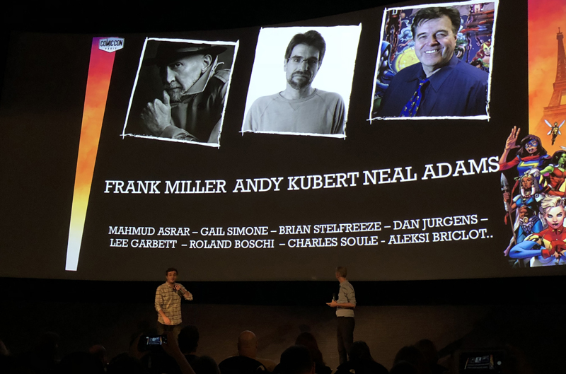Qui dit Comic Con, dit à priori « comics » : c’est donc avec cette première partie que Jérémy Briam, nouveau Brand Manager du CCP et Fred Benudis, présent depuis la première édition, commence la conférence de presse. En invité d’honneur, on retrouve Frank Miller (The Dark Knight Returns, Watchmen, Sin City…), déjà venu par le passé. Neal Adams, autre légende des comics, se joindra à lui, ainsi que Adam Kubert, dessinateur émérite de DC Comics et Marvel. Les fans de bande-dessinées se baladeront dans l’Artist Alley. On y croisera notamment Dan Jurgens, Gail Simone, Mahmud Asrar, Charles Soule ou encore David Lloyd.
