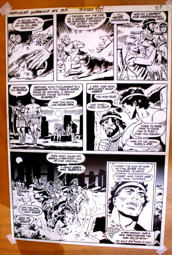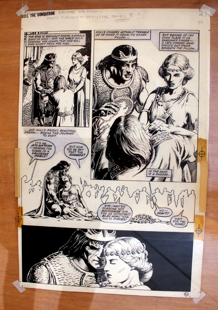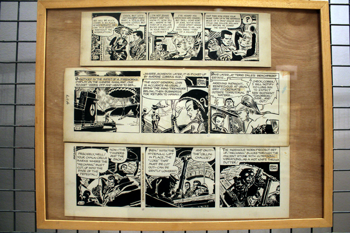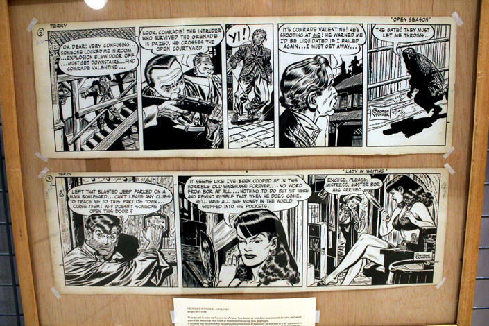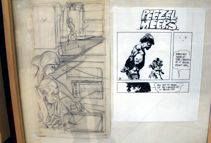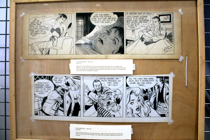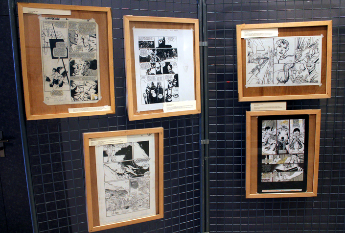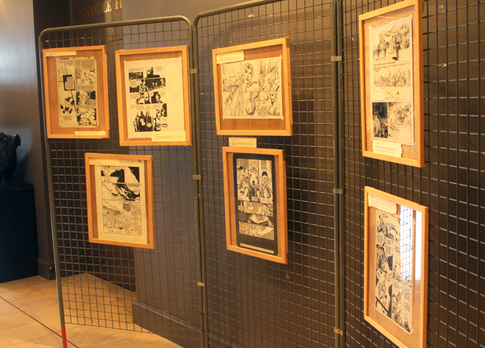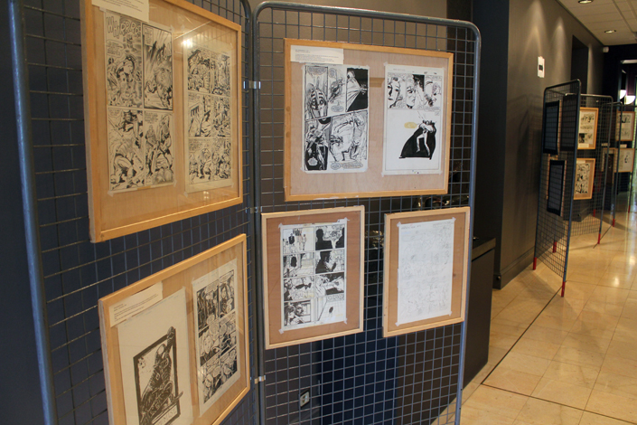 Le lien peut paraître incongru mais Gary Constant, le directeur artistique de Mauvais Genre, est prompt à expliquer qu’après tout il s’agît d’un art bien souvent mésestimé, là aussi « ‘d’un « Mauvais Genre », d’artistes dont le grand public connaît parfois les personnages mais rarement les noms. Le déclic, bien sûr, s’est produit avec l’accès à ces planches, provenant pour l’essentiel de la réserve d’un seul collectionneur privé, visiblement très bien « achalandé ». Le parcours résultant, formé d’une cinquantaine d’originaux, proposait une diversité folle, proposant aussi bien des dessins de Jeffrey Catherine Jones que de Wally Wood. Non seulement on trouvait des styles très différents mais aussi des originaux de configurations diverses (par exemple Foster, qui travaillait chacune de ses cases dans un « format géant ») ou simplement de voir certains artistes non « dilués » dans la postproduction propre aux comics. Par exemple, les dessins d’un Frank Robbins, libérés de la couleur omniprésente des fascicules, rendent plus hommage au talent du maître. Cette exposition rare n’a duré que quelques jours. Il est trop tard pour vous précipiter à la mairie de Tours mais vous trouverez ci-dessous une galerie de photos qui vous donnera une idée de tout ce qui se trouvait réuni.