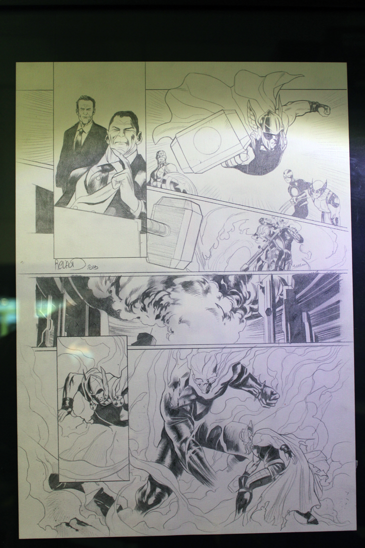 . Paul est en effet présent en dédicace aujourd’hui chez Apo-K-Lyps (120 rue Legendre, 75017), à l’occasion du Free Comic-Book Day. Il a donc amené avec lui un certain nombre d’originaux, dont une dizaine de pages de cet Annual tout frais qui lui tient à cœur.