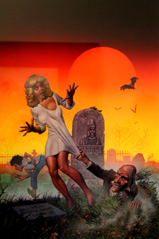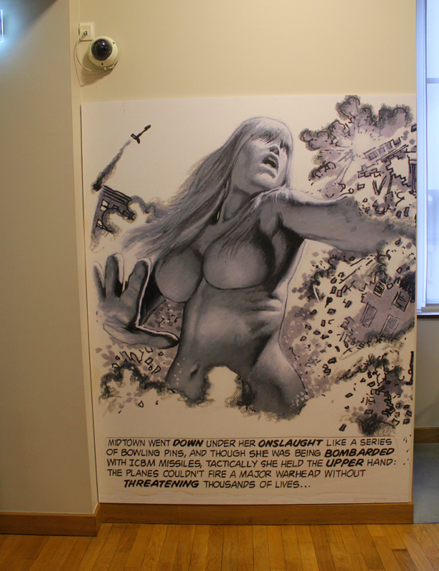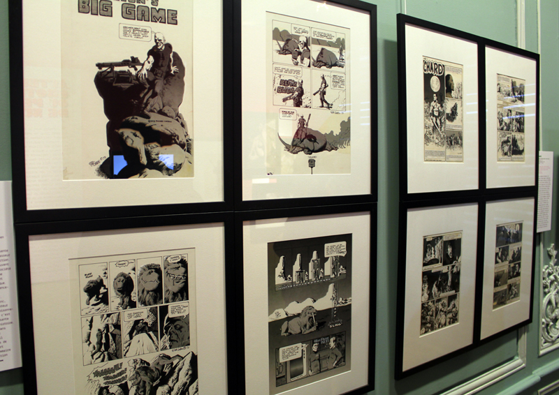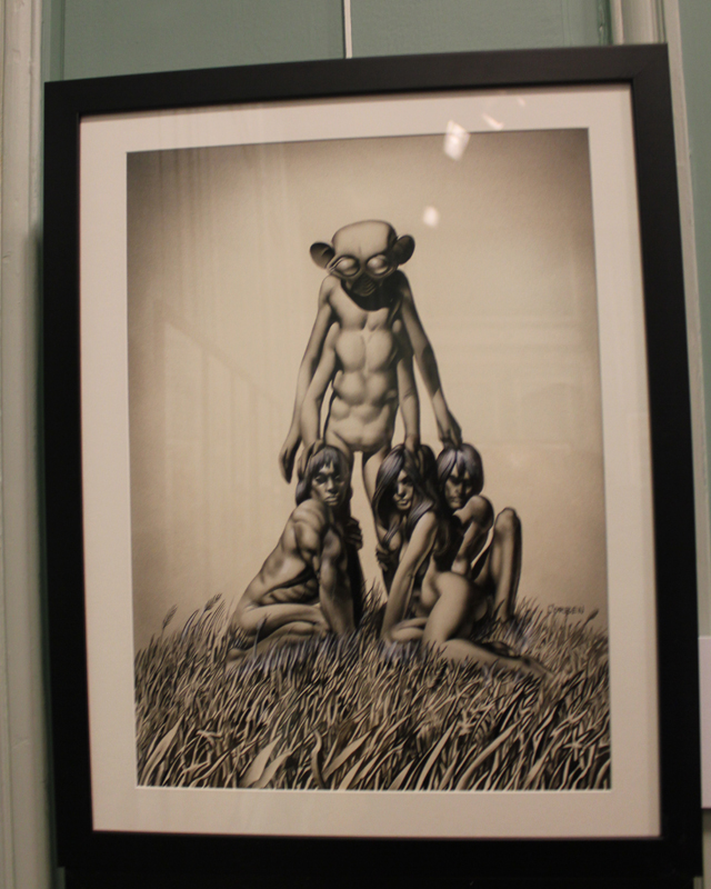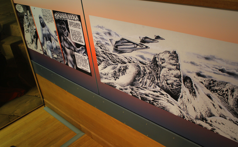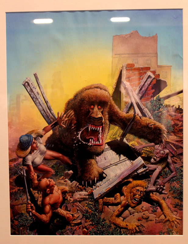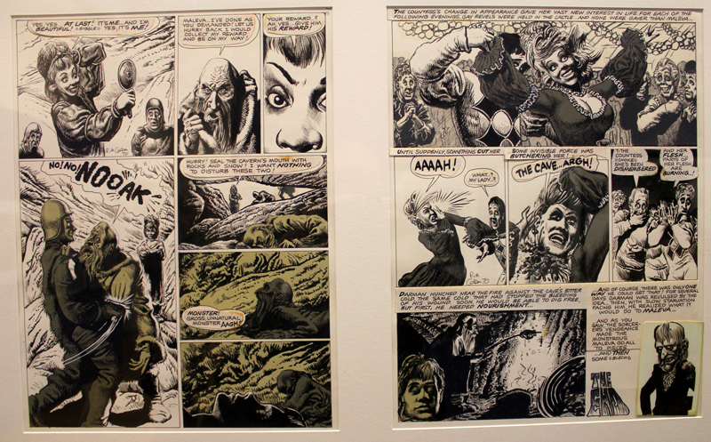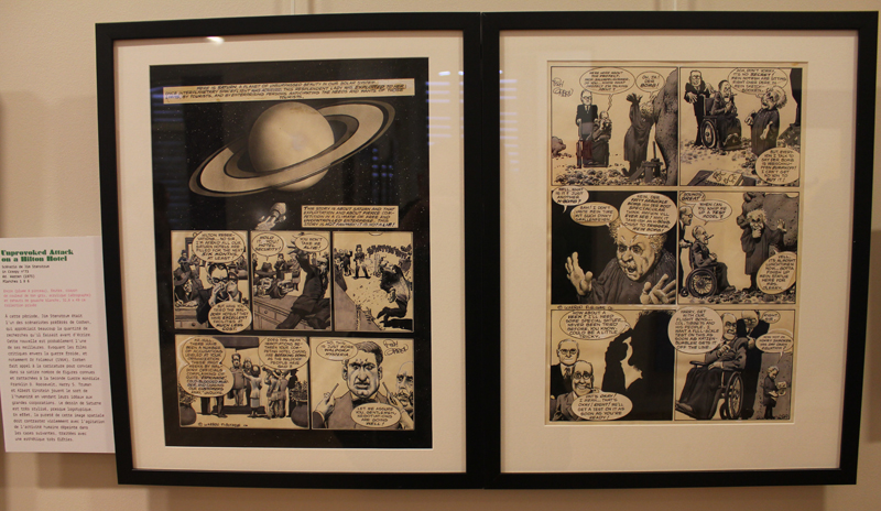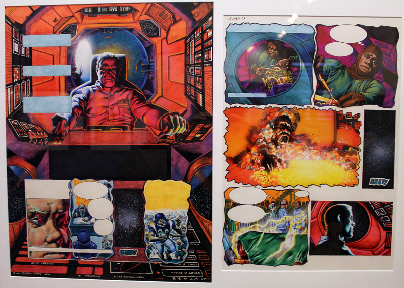 Exposer Corben au musée, cela faisait donc doublement sens ce week-end. Car si la nudité est omniprésente dans les premières décennies du travail du maître, ce n’est pas pour autant que cela veut dire pornographie, comme certains voulaient l’y réduire l’an dernier. Pour preuve un public familial, certes parfois un peu sidéré de découvrir cet univers si particulier. Mais pas forcément choqué. Pour preuve quelques enfants venus avec leurs parents, enfants qui accordaient bien peu d’attention aux monstres et aux pinups mais s’amusaient du côté grotesque de la chose. Bien pensée, l’exposition expliquait en effet de façon très pédagogique le parcours de l’auteur. Elle ménageait aussi une dimension multimédia avec les films d’animations que Corben a pu créer à ses débuts ou encore des statuettes modelées par l’artiste pour lui servir de modèle. Les gamins adoraient cet aspect ludique. Et puis réduire Corben « aux muscles et aux tétons » serait amputer toute une partie de sa carrière de maître du fantastique, avec des visions de vampires, de gorilles ailés, de dinosaures ou encore ses adaptations des romans de Poe. A l’inverse, ceux qui connaissaient, qui avaient pu passer de longue date ses pages, ses couvertures (ses « années Métal » comme expliqué dans l’exposition) avaient de quoi rester bouche-bée devant des originaux devenus depuis des décennies des classiques.