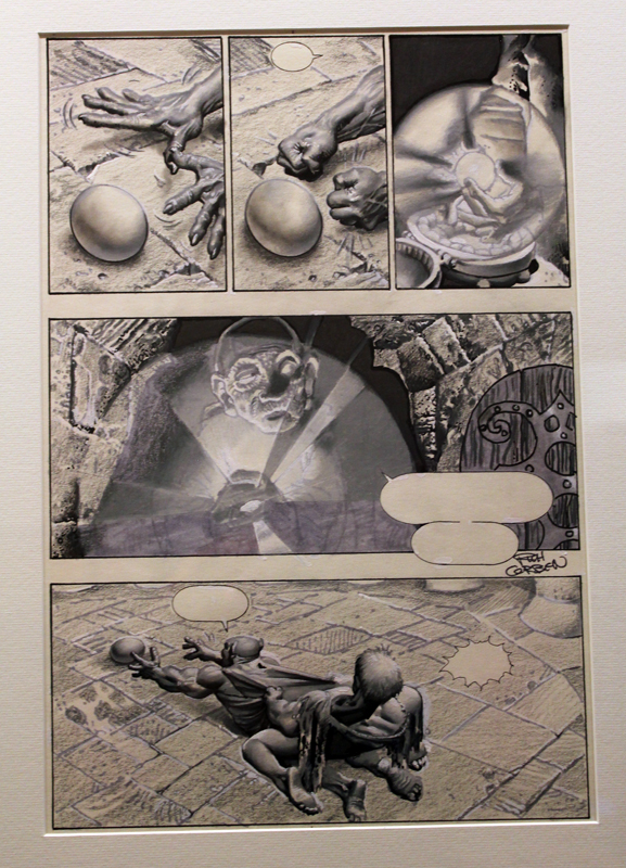 Corben fait des cases, des illustrations, des univers. Il est assurément particulier et peux surprendre qui le découvre d’un seul coup. Il résiste aux tentatives de l’enfermer dans des (trop) petites définitions. Le musée d’Angoulême nous proposait ni plus ni moins que tout l’imaginaire de Corben, sa maitrise de la chair, il est vrai, mais aussi son travail sur la noirceur, sur les détails. Sa connaissance des masses mais parfois, aussi, quand il le faut, de l’immobilisme. L’exposition Corben à Angoulême était un événement rare, un rendez-vous hors-norme. A l’image de l’exposition consacrée à Bill Watterson il y a quelques années, elle permettait, malgré l’absence de l’artiste, d’évoquer toutes les facettes de son art, de sa vision. Rien d’un raccourci grossier mais au contraire un inventaire d’une richesse folle. Une vraie réussite qui faisait que si Corben était absent par le corps (quel paradoxe), son esprit était bien là !