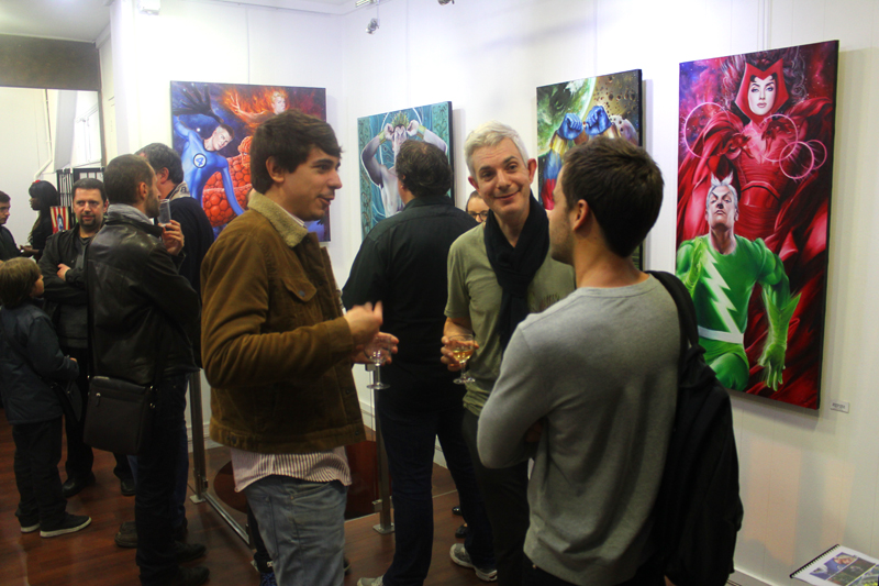 [FRENCH] Depuis jeudi Fred Ian expose à la galerie Carole Kvasnevski (Paris) des tableaux qui ont tous en commun d’être inspirés par les super-héros américains. Si dans l’année écoulée on a pu voir passer des faiseurs qui se contentaient de recopier placidement les maîtres de la BD américaine pour mieux tromper un public de l’Art contemporain qui ne connaît que rarement la source, ici pas de confusion possible. Attention. Ces Captain Marvel, Batman, Fantastic Four ou autres Quicksilver et Scarlet Witch viennent du vrai travail d’un passionné qui, s’il ne s’empêche pas de faire un clin d’oeil au Doctor Doom de John Byrne, créée réellement ses compositions, ses anatomies et ses rendus. Petit aperçu de l’exposition que vous pouvez découvrir à la galerie pendant quelques semaines…
