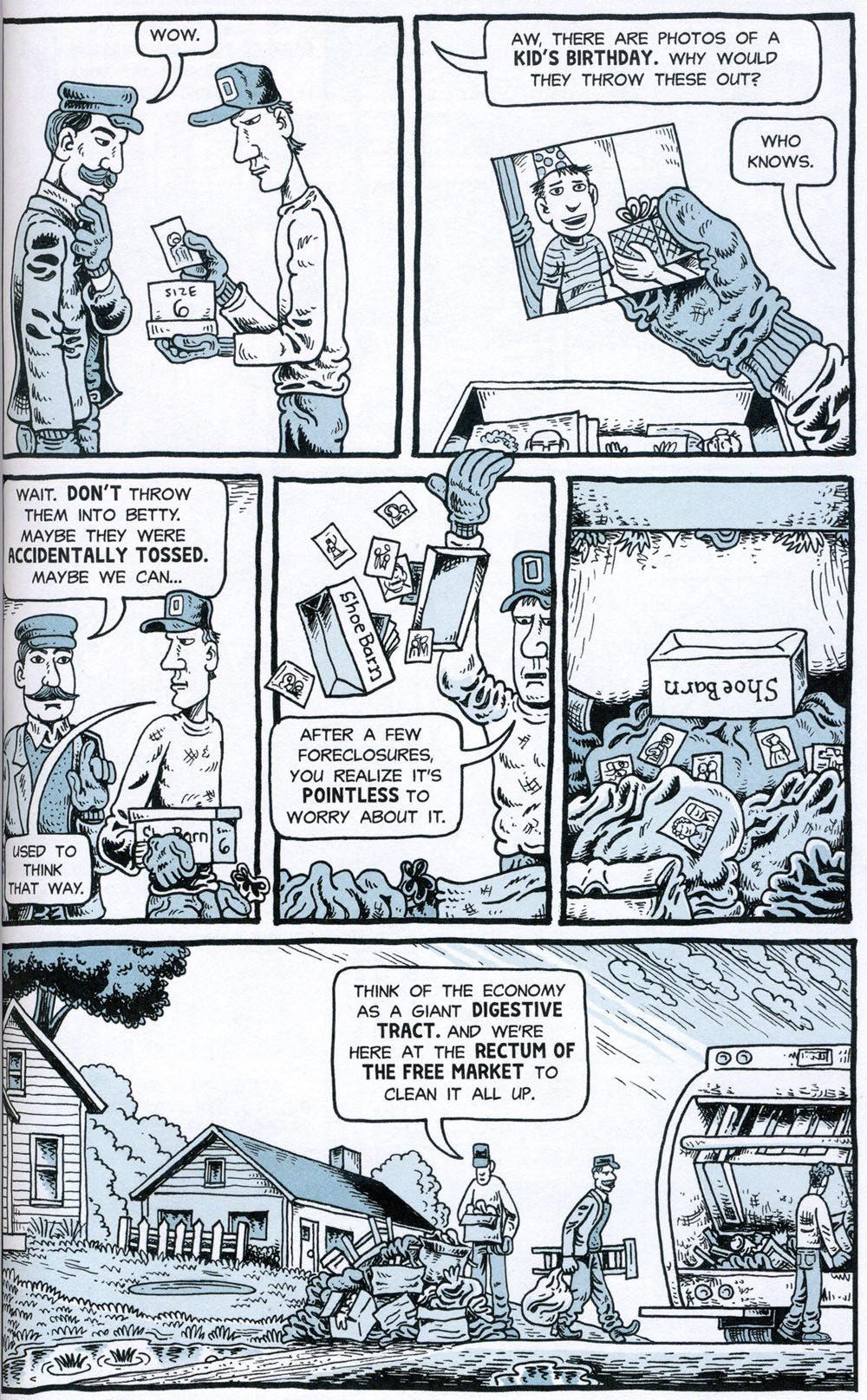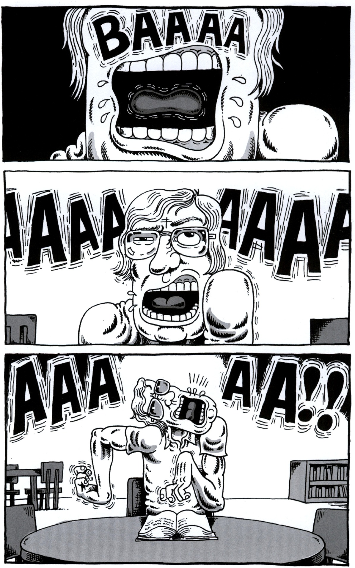 D.B. : Je ne suis pas fan de ce que les éditeurs « mainstream » produisent actuellement, c’est certain, mais j’ai grandi en lisant Marvel et DC. J’adorais ces comics quand j’étais ado et ils m’ont poussé à produire mes propres comics. Je continue de regarder les titres de cette époque pour trouver de l’inspiration, de lire Kirby, Ditko, Bernie Wrightson, Neal Adams, Barry Smith et les autres. Mais de toute façon, de nos jours, un nouvel équilibre était déjà en train de se mettre en place. Ce sont les lecteurs qui décident de ces choses. J’ai toujours pensé que si vous faites de bonnes BD les lecteurs finiront par les trouver. Une crise économique ne changera pas ça. Même pendant la Grande Dépression les comics s’épanouissaient, principalement dans les pages des journaux, avec Dick Tracy, Terry & The Pirates, Popeye et le reste. Je pense aussi que la notion « d’indés » est inexacte. On doit revoir ce genre de labels. Mon éditeur américain est Abrams Books, qui appartient à l’un de vos plus gros éditeurs, le groupe La Martinière. On ne peut plus qualifier ça d’indé. Les autres gros éditeurs de romans graphiques sont possédés par des conglomérats internationaux. Il reste quelques petits éditeurs, qui sont réellement « indés ». Mais les auteurs comme moi continuons d’être qualifiés d’indépendants quelque soient les éditeurs avec lesquels nous travaillons. En France, c’est différent bien sûr, vos éditeurs « mainstream » ne sont généralement pas si tentaculaires. Vous avez aussi plus de petits éditeurs que nous en avons, comme mes potes des éditions çà et là.