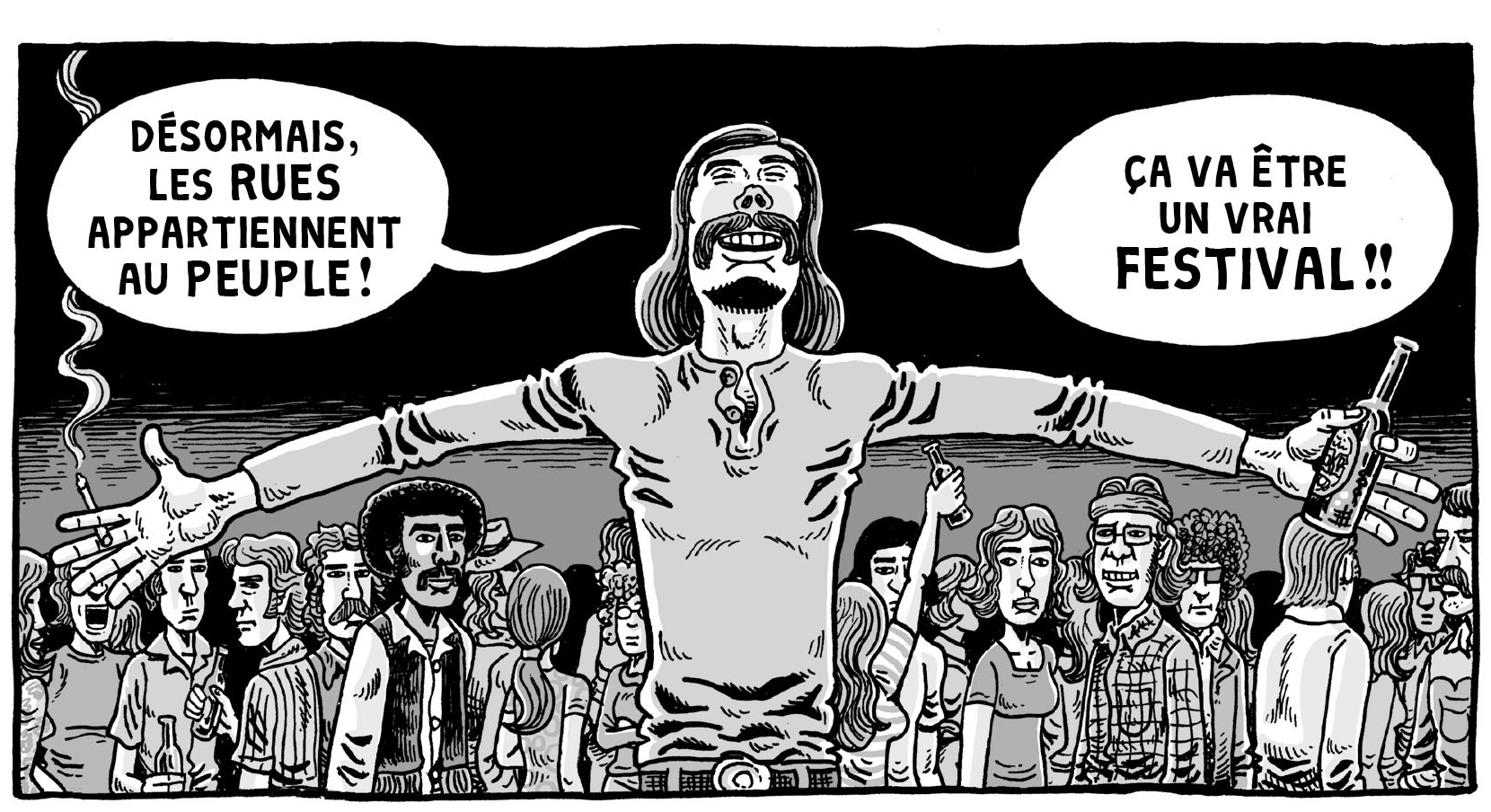 D.B. : Chaque sortie de livre prévue pour 2020 va souffrir. Toute ma tournée de dédicace de printemps a été annulée : environ 40 dates de dédicace, de conférences et de festivals, avec des visites en Hollande, en France et en Finlande. C’est décevant mais c’est comme ça. La première moitié de ma tournée devait s’achever à la San Diego Comic Con en juillet, qu’ils n’ont pas encore annulé, mais ce n’est qu’une question de temps. La seconde moitié de la tournée était prévue pour l’automne et reste prévue. Mais je suis pratiquement sûr que ça va être annulé aussi. En fait je suis convaincu que nous n’aurons guère plus de festivals ou de conventions en 2021, tant qu’un vaccin contre cette merde n’aura pas été découvert. Au moins repousser la sortie de mon livre en septembre lui laisse une chance. On peut espérer que les librairies auront réouvert d’ici là. Et puis, c’est tout aussi important, peut-être que les gens penseront à autre chose que le COVID-19 d’ici-là. Mon livre profitait d’un bon « buzz » et tout ça s’est évanoui d’un coup, parti en fumée. Plus personne ne parle d’autre chose que la pandémie (et ça se comprend, bien sûr). Peut-être que dans six mois les gens pourront à nouveau s’intéresser à l’histoire de Kent State. Je réalise que ça à l’air trivial comparé à tout ce qui se passe en ce moment mais c’est à la fois une histoire marquante (l’album prend pour point de départ un événement réel, la fusillade de l’université d’État de Kent en 1970) et un livre dont je suis très fier. C’est un récit qui parle de questions importantes, comme les dangers de l’autoritarisme et comment un gouvernement écrase les dissidences. Ces questions, j’en ai bien peur, deviendront bientôt encore plus d’actualité. Les puissants ont toujours utilisé les grandes crises comme celle-ci pour grapiller encore plus de pouvoir. Dieu seul sait ce qui va nous arriver avec ce clown grotesque que nous avons à la Maison Blanche. Et de la même manière, quand les Gilets Jaunes manifesteront à nouveau, de quelle tolérance feront preuve votre gouvernement et votre police ?
