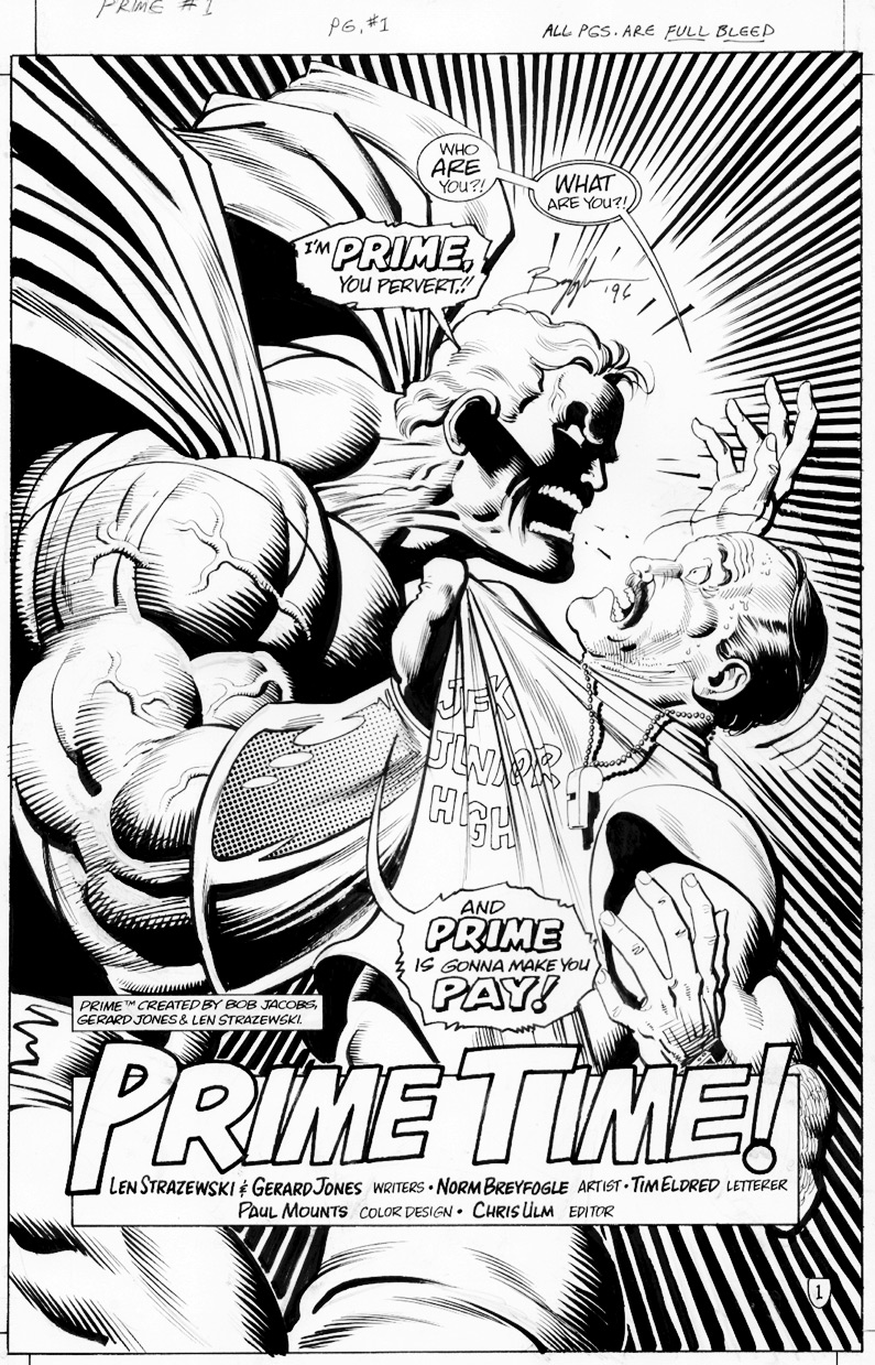 De ce fait, au moment de « l’explosion Image » qui chamboule la scène des comics vers 1993, il n’est pas étonnant que d’autres éditeurs fassent appel à Norm pour tenter d’émuler la même ambiance (et les mêmes ventes). Le dessinateur est donc « débauché » de DC Comics par Malibu où, avec Bob Jacob, Gerard Jones, et Len Strazewski, il créé le super-héros Prime, sorte de variation délirante de Captain Marvel/Shazam, sur un adolescent de 13 ans qui a le pouvoir de se créer le corps d’un adulte surpuissant (et surmusclé, donc). Prime devient à bien des égards le héros principal de l’univers Ultraverse chez Malibu. Mais les revers de l’éditeur et son rachat par Marvel feront que le personnage est ensuite largement tombé dans l’oubli. En 1994 (alors qu’il est encore chez Malibu), Norm Breyfogle écrit et dessine son propre titre « creator owned », Metaphysique, mais la série passe relativement inaperçue. Breyfogle passe ensuite chez Valiant où il dessine pendant quelques mois les aventures de Bloodshot.