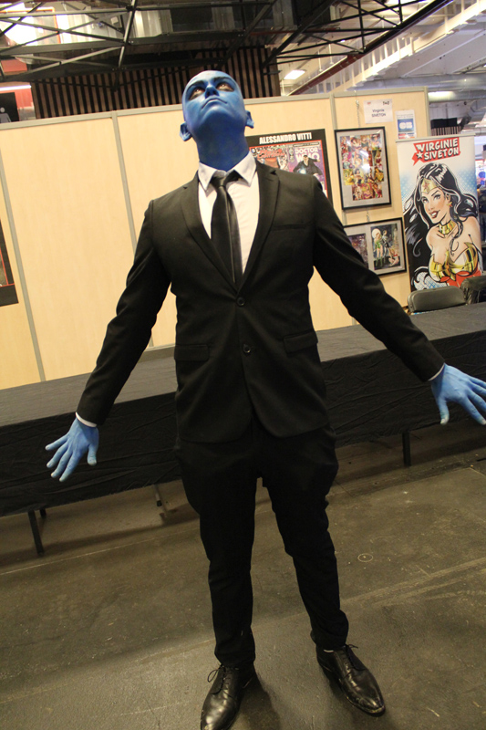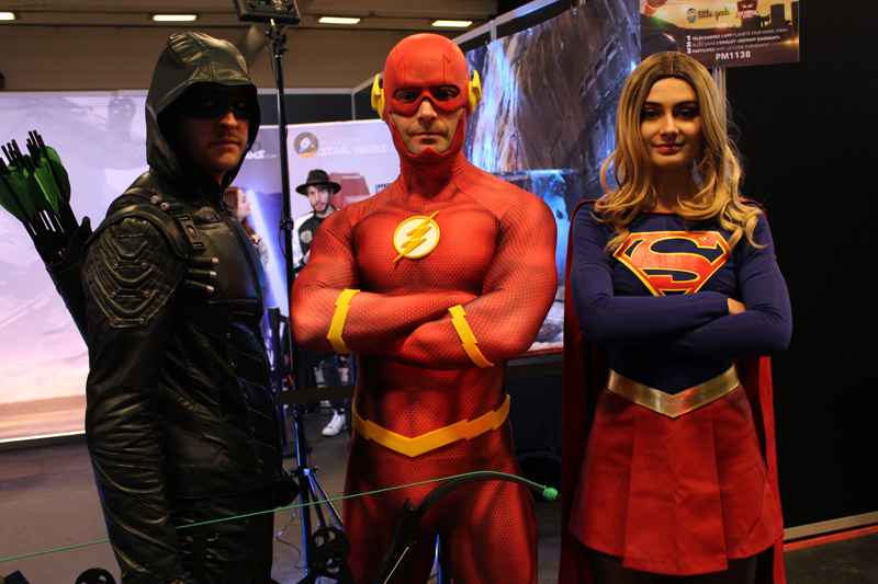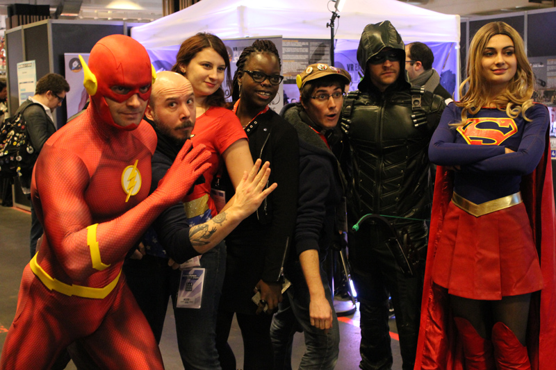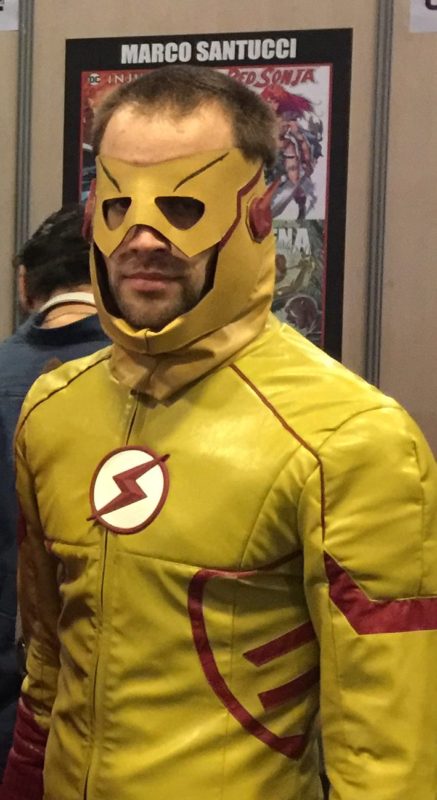 Outre les auteurs déjà annoncés, le reste des conférences repose sur de nombreux spécialistes venus discuter de sujets divers. Les liens entre comics et cinéma, entre comics et manga et bien d’autres choses encore sont discutés à volonté. Ainsi une conférence permet de parler du William Moulton-Marston, le créateur de Wonder Woman, en prévision de la sortie du film My Wonder Women. Plus tard, c’est un vrai panel sur les femmes et les comics (c’est à dire les créatrices mais aussi la représentation des femmes dans la BD) qui réunit Daniela Dimat, Tina Valentino et Maria Laura Sanapo. Cette dernière se révèle vite la vraie meneuse de la discussion. Dessinatrice de DC Bombshells ou Sheena The Jungle Queen, elle lance le débat. Mais ses deux collègues apportent aussi leur pierre à l’édifice. Le dimanche est marqué entre autres choses par une table ronde à l’occasion des 80 ans de Superman. Moment intéressant car sur la scène on retrouve non seulement le journaliste Vincent Brunner (auteur d’un livre sur les super-héros), Marc Duveau (pionnier des livres français sur les comics) et un vétéran : Bernard Trout, l’ancien directeur éditorial de Sagédition et à ce titre celui qui a traduit Superman en France pendant près de quatre décennies. Ce fougueux nonagénaire (!) apporte une perspective pleine d’anecdotes, tandis que les fans modernes sont sidérés par certains détails liés à la censure, à la nécessité de rebaptiser le héros Yordi ou encore à la réaction de Bernard Trout à la mort de Superman, en 1992. N’oublions pas, non plus, la présence de nombreux cosplayeurs parmi lesquels un Flash sidérant (celui de notre image d’ouverture). Non seulement son costume est fidèle mais il a mis au point une gestuelle qui évoque l’accélération. C’est bluffant. A quelques mètres de là un petit garçon le regarde faire… en se demandant à l’évidence si c’est pour de vrai.