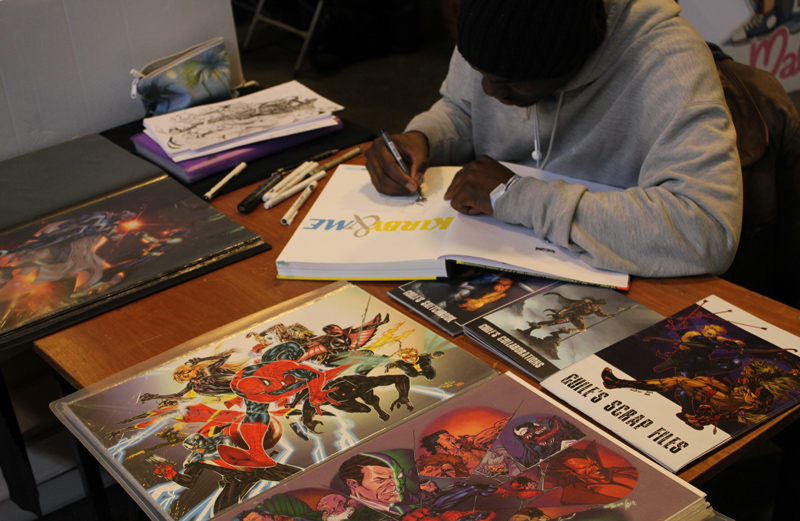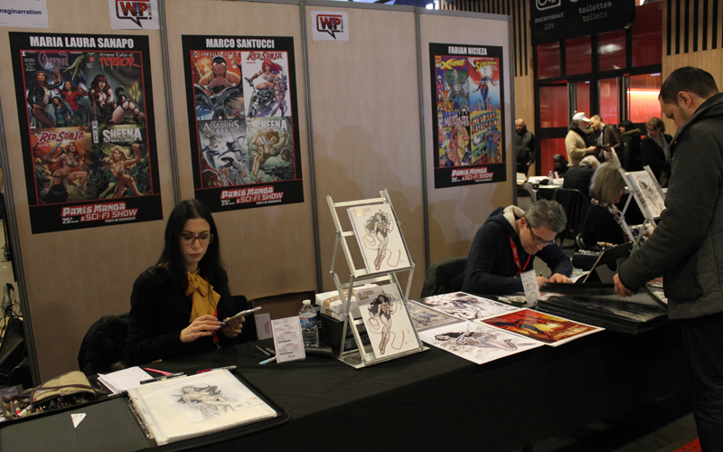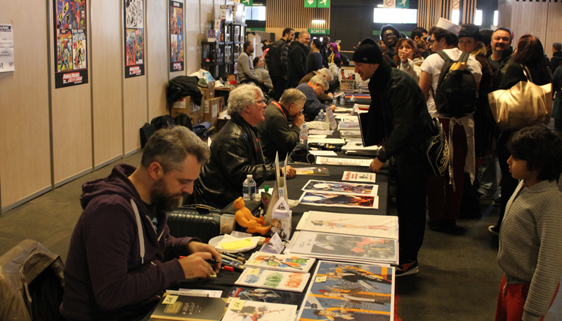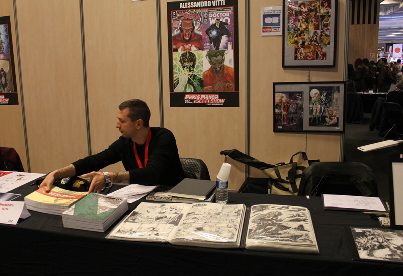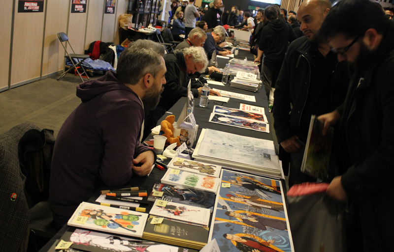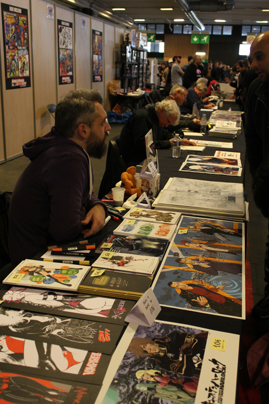 L’un des débouchés les plus visibles du surplus d’espace est, cette année, l’ouverture d’une scène comics non loin de l’Artist Alley, qui permet de picorer des conférences courtes mais nombreuses (pour être honnête, précisons que Xavier Fournier est à la programmation). C’est à dire que pendant deux jours on peut croiser des auteurs tels qu’Alan Davis, Daniela Dimat, Mark Farmer, Julien Hugonnard-Bert, Tom Lyle, Bob McLeod, Fabian Nicieza, Maria Laura Sanapo, Marco Santucci, Tina Valentina, Alessandro Vitti (et aussi Laurent Lefeuvre, sur le stand de Comics Mag)… Mais on retrouve aussi nombre d’entre eux lors de ces conférences thématiques. Et là pour le coup les auteurs jouent le jeu et même parfois se lâchent un peu, discutant de certains projets avortés ou à venir. Ainsi Tom Lyle raconte comment, une fois Ben Reilly devenu Spider-Man, l’artiste était supposé lancer une série Scarlet Spider avec Peter Parker reprenant à son compte son identité et devant s’habituer à une vie plus pauvre, avec son épouse. Mais l’auteur explique aussi comment un éditeur l’éjecta des Spider-titres juste parce qu’il ne l’aimait pas. Autre anecdote, quelques années plus tard Tom s’est vu commander l’écriture et le dessin de trois épisodes de Spider-Man qui voyaient Atlantis attaquer New York. Produits, ils ne furent pas publiés et tombèrent aux oubliettes. Encore plus récemment, Tom Lyle a proposé à Marvel de faire gratuitement les modifications nécessaires pour que le récit corresponde à la continuité actuelle et soit enfin publié. Mais Axel Alonso lui-même lui a fait comprendre que son style n’était plus le bienvenu dans la Maison des Idées. Alan Davis, lui, ne se voit pas retourner de sitôt chez… DC Comics. Et un sens il le regrette car il explique qu’il a en tête une troisième minisérie dans la lignée de JLA: The Nail, qui aurait pour titre The Final Nail. Mais comme DC semble s’être éloigné des récits à la Elseworld il doute pouvoir mener à bien son projet. Fabian Nicieza, lui, travaille sur un projet de creator-owned d’actualité puisqu’il a pour thème le harcèlement sur les réseaux sociaux. Son personnage est un harceleur d’harceleurs, quelqu’un capable de surgir de votre téléphone 4G si vous vous en prenez aux faibles… et de vous administrer une bonne correction !