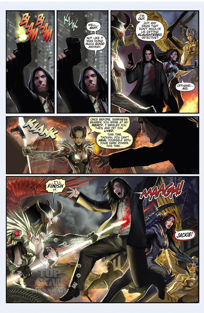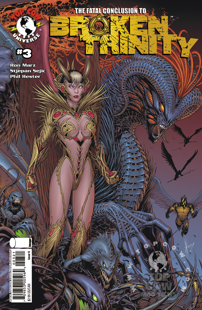 [ENGLISH] Top Cow tells us: The event of the year concludes! Just like FIRST BORN before it, the outcome of BROKEN TRINITY will affect the Top Cow Universe forever. The mini-series lives up to its name as the trinity of Witchblade, The Darkness and The Angelus is broken when a character dies, causing an upset in the balance between Light and Dark. But amidst all this destruction, there is creation. The entire Top Cow Universe hangs in the balance as one story ends…and some new ones begin. Featuring the final piece of an epic triptych cover by Dale Keown (THE DARKNESS/PITT)!